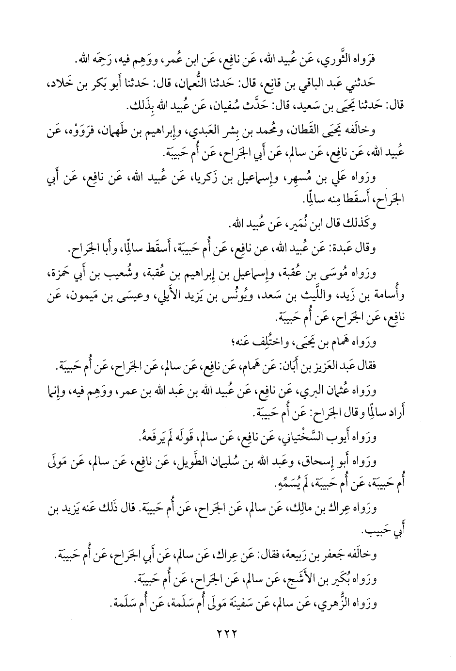 ورواه عثمان البري، عن نافع، عن عُبيد الله بن عبد الله بن عمر، ووهم فيه، وإنما أراد سالما، وقال الجراح: عن أم حبيبة.