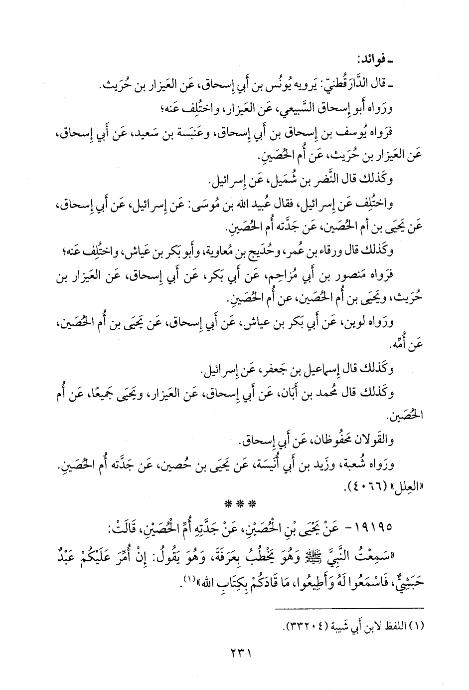 - قال الدارقُطني: يرويه يونس بن أبي إسحاق، عن العيزار بن حريث.