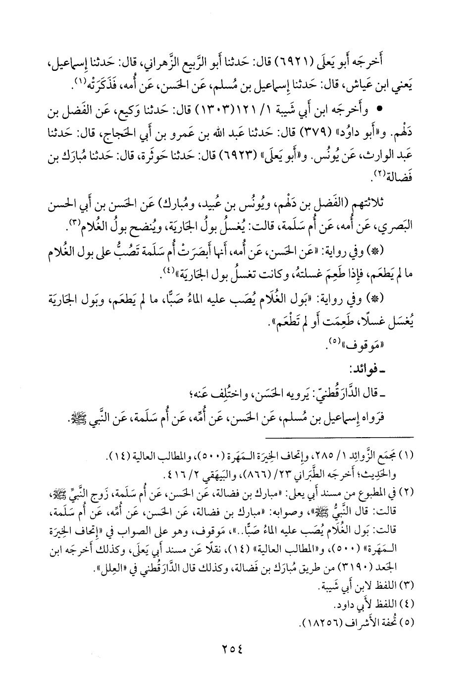 ووقفه يونس بن عبيد، ومبارك بن فضالة، والفضل بن دلهم، عن الحسن، عن أمه، عن أُم سلمة، قولها، وهو الصواب. «العلل» (٣٩٩٩).