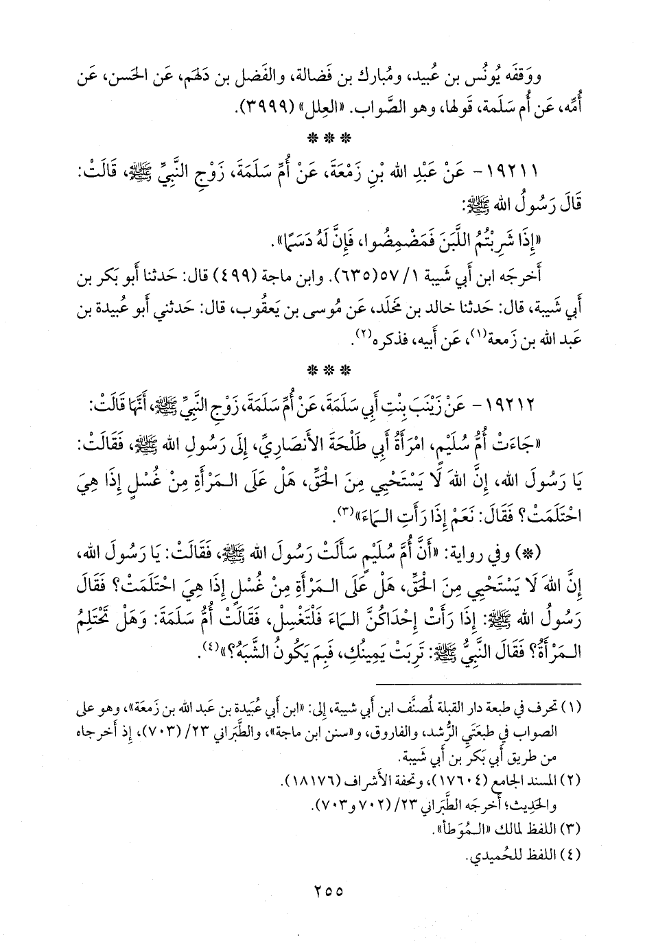١٩٢١٢ - عن زينب بنت أبي سلمة، عن أُم سلمة، زوج النبي صَلى الله عَليه وسَلم أنها قالت: