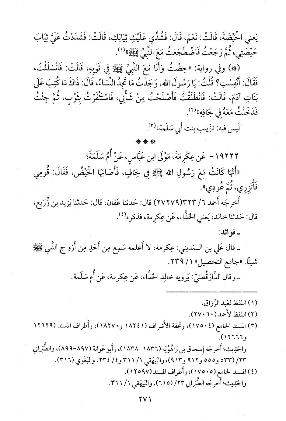 ١٩٢٢٢ - عن عكرمة مولى ابن عباس، عن أُم سلمة؛