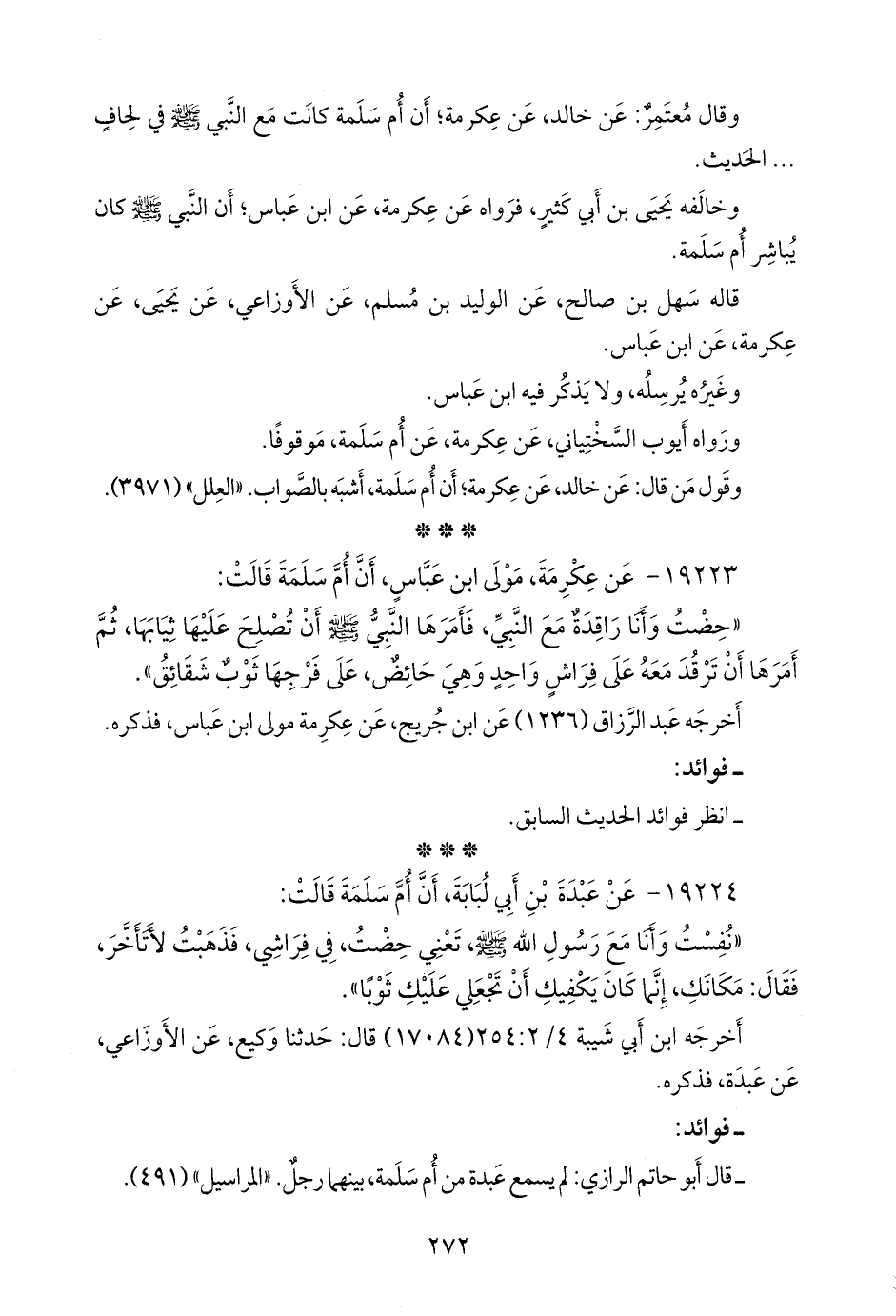 ١٩٢٢٣ - عن عكرمة مولى ابن عباس، أن أُم سلمة قالت: