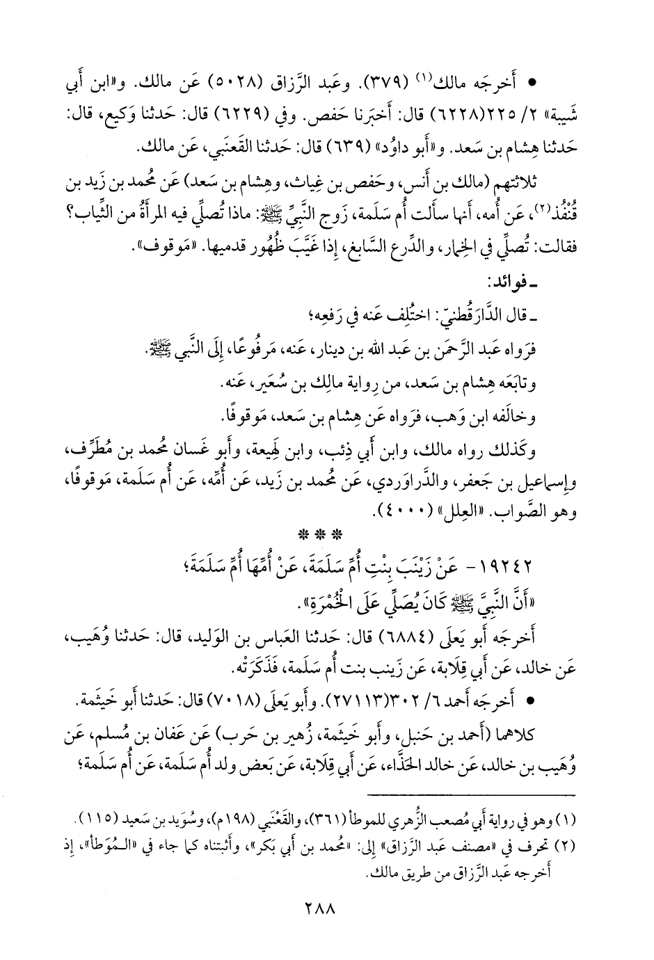 - سُئل الدارقُطني، عن حديث محمد بن زيد بن المهاجر بن قنفذ، عن أمه، عن أُم سلمة، أنها سألت النبي صَلى الله عَليه وسَلم: أتصلي المرأة في درع وخمار، ليس عليها إزار؟ قال: نعم إذا خمر الدرع القدمين، فقال: اختلف عنه في رفعه؛