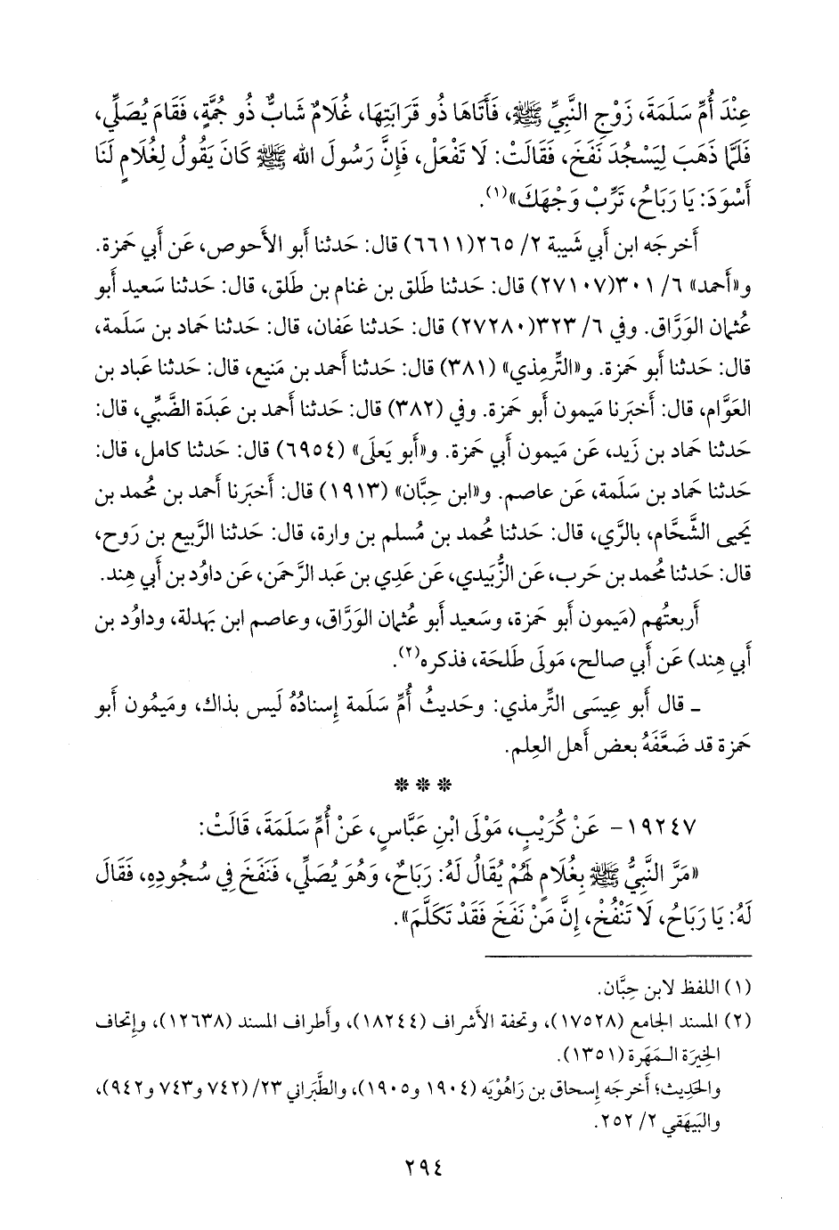 ١٩٢٤٧ - عن كُريب مولى ابن عباس، عن أُم سلمة، قالت: