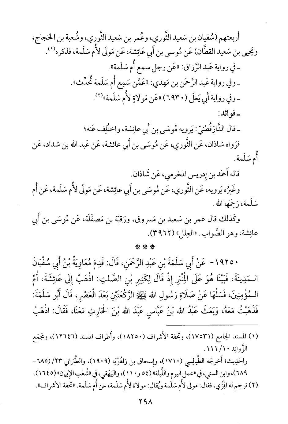 ١٩٢٥٠ - عن أبي سلمة بن عبد الرَّحمَن، قال: قدم معاوية بن أبي سفيان المدينة، فبينا هو على المنبر إذ قال لكثير بن الصلت: اذهب إلى عائشة، أُم المؤمنين، فسلها عن صلاة رسول الله صَلى الله عَليه وسَلم الركعتين بعد العصر، قال أَبو سلمة: فذهبت معه، وبعث عبد الله بن عباس عبد الله بن الحارث معنا، فقال: اذهب