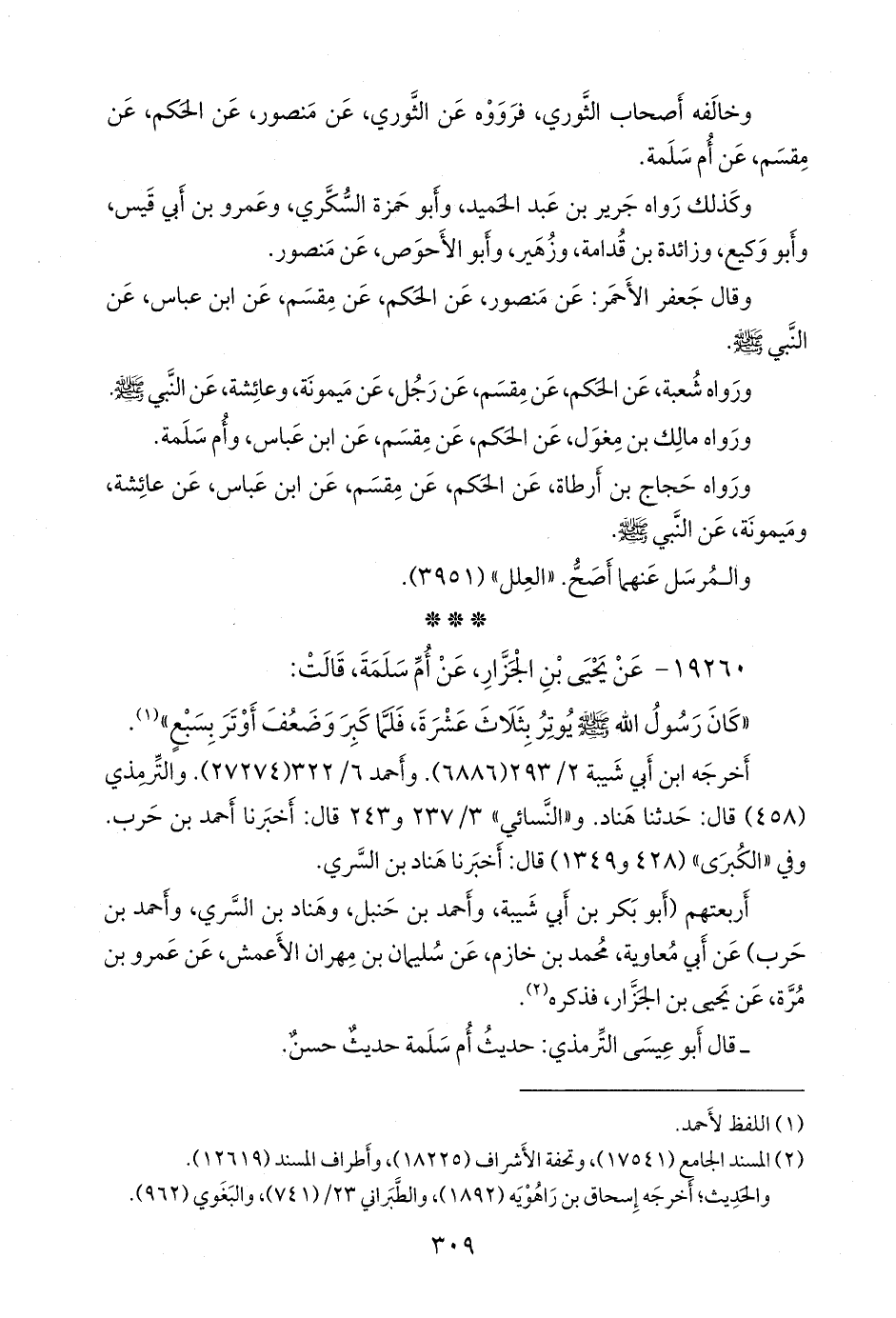 - قال التِّرمِذي: حديث أُم سلمة حديث حسن.