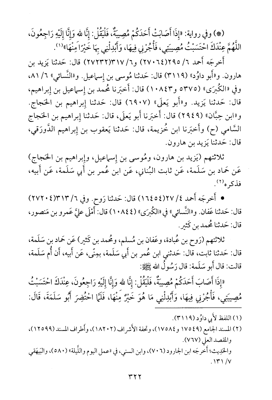 (¬٢) المسند الجامع (١٧٥٤٩ و ١٧٥٨٤)، وتحفة الأشراف (١٨٢٠٢)، وأطراف المسند (١٢٥٩٩)، والمقصد العَلي (٧٦٧).