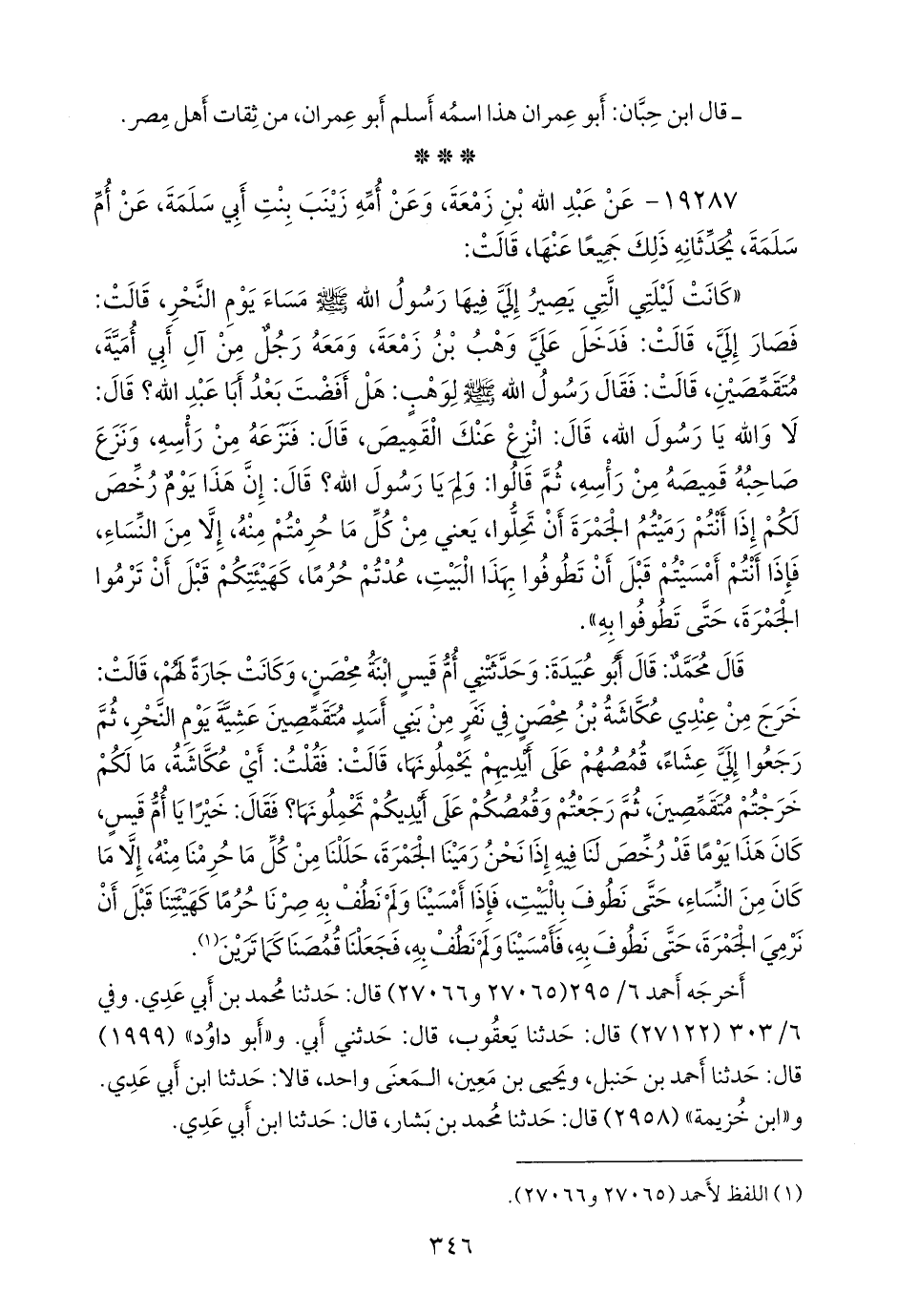أخرجه أحمد (٢٧٠٦٥) قال: حدثنا محمد بن أَبي عَدي. وفي ٦/ ٣٠٣ (٢٧١٢٢) قال: حدثنا يعقوب، قال: حدثني أبي. و «أَبو داود» (١٩٩٩) قال: حدثنا أحمد بن حنبل، ويحيى بن مَعين، المعنى واحد، قالا: حدثنا ابن أَبي عَدي. و «ابن خزيمة» (٢٩٥٨) قال: حدثنا محمد بن بشار، قال: حدثنا ابن أَبي عَدي.