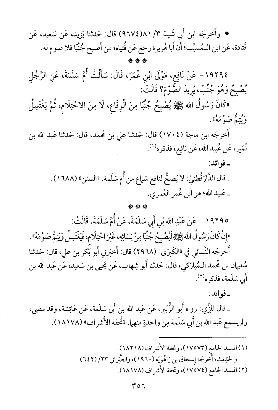 - قال الدارقُطني: لا يصح لنافع سماع من أُم سلمة. «السنن» (١٦٨٨).