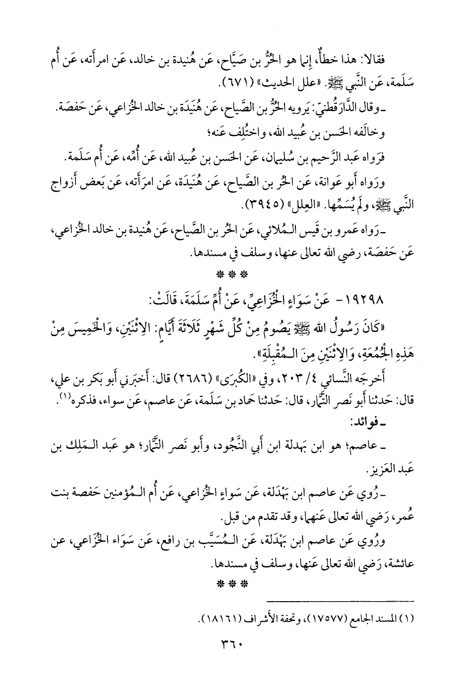 أخرجه النَّسَائي ٤/ ٢٠٣, وفي «الكبرى» (٢٦٨٦) قال: أخبرني أَبو بكر بن علي، قال: حدثنا أَبو نصر التمار، قال: حدثنا حماد بن سلمة، عن عاصم، عن سواء، فذكره (¬١).