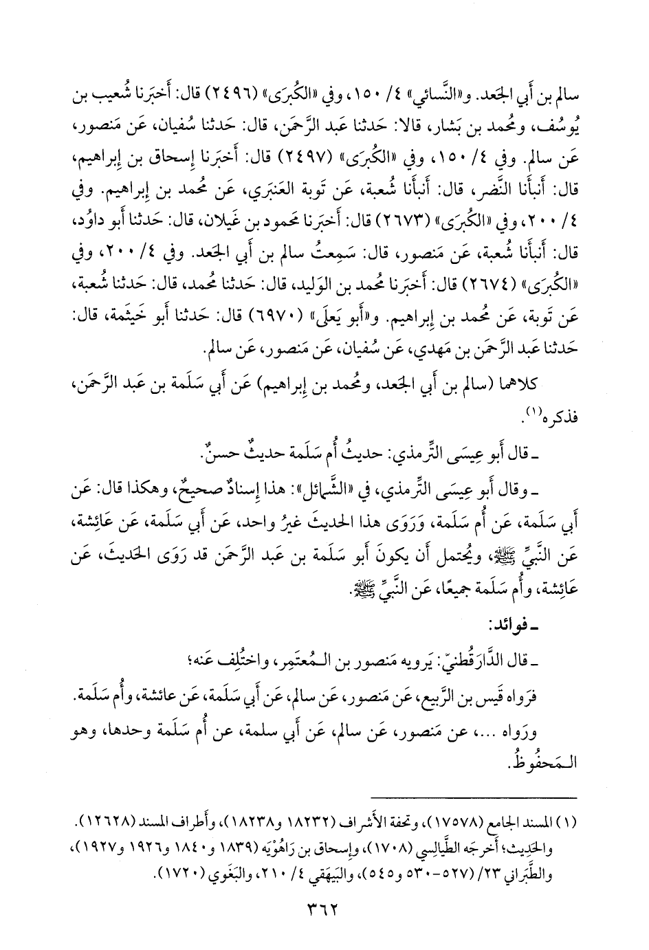 ورواه ... ، عن منصور، عن سالم، عن أبي سلمة، عن أُم سلمة وحدها، وهو المحفوظ.