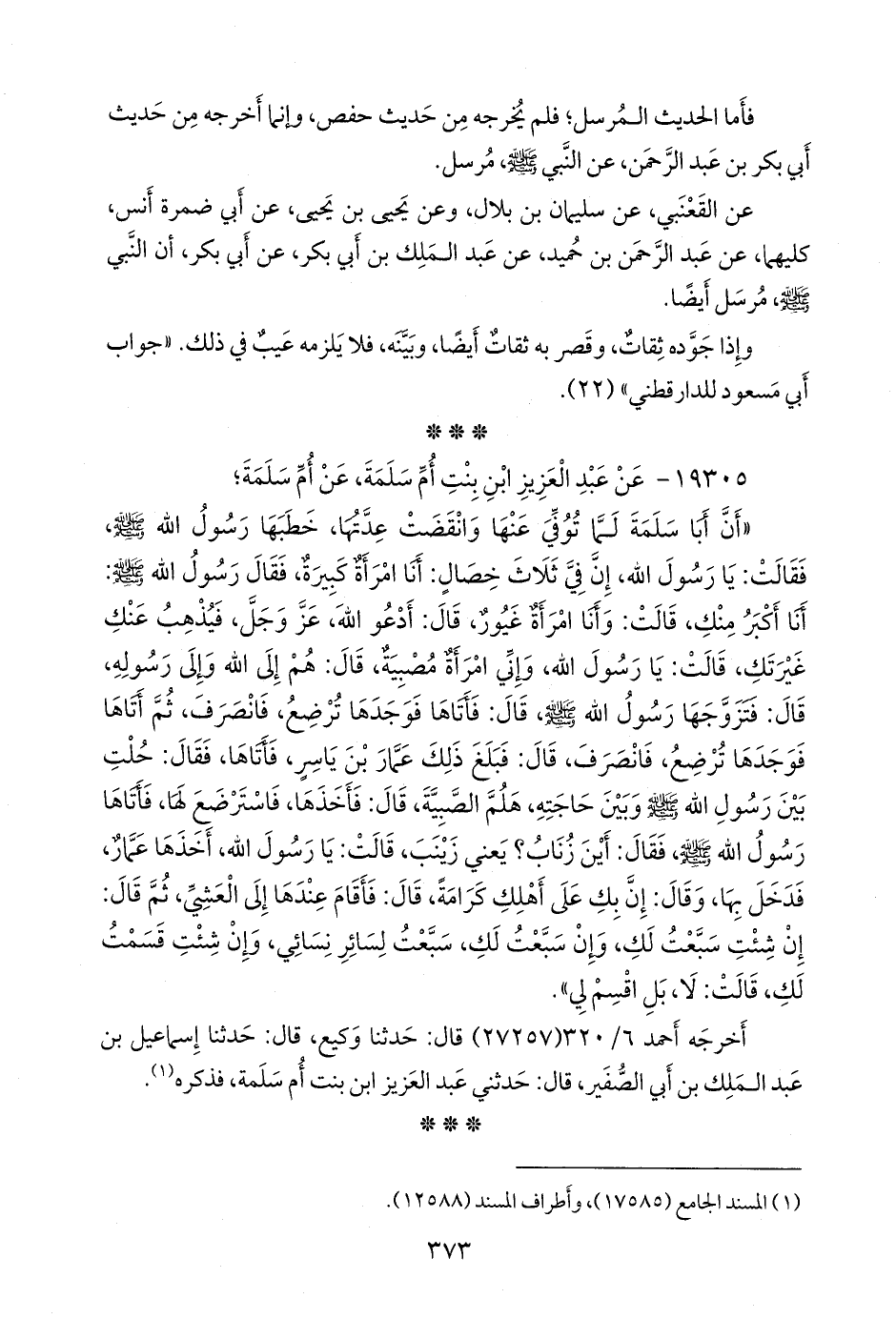 ١٩٣٠٥ - عن عبد العزيز ابن بنت أُم سلمة، عن أُم سلمة؛