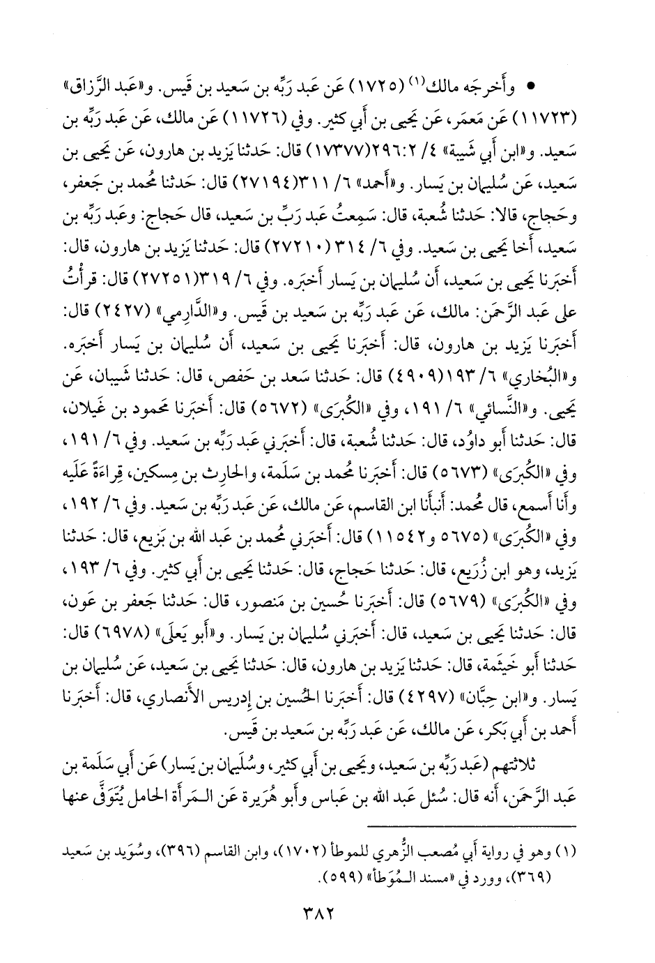 وفي ٦/ ٣١٩ (٢٧٢٥١) قال: قرأت على عبد الرَّحمَن: مالك، عن عبد رَبِّه بن سعيد بن قيس. و «الدَّارِمي» (٢٤٢٧) قال: أخبرنا يزيد بن هارون، قال: أخبرنا يحيى بن سعيد، أن سليمان بن يسار أخبره. و «البخاري» ٦/ ١٩٣ (٤٩٠٩) قال: حدثنا سعد بن حفص، قال: حدثنا شَيبان، عن يحيى. و «النَّسَائي» ٦/ ١٩١, وفي «الكبرى» (٥٦٧٢) قال: أخبرنا محمود بن غَيلان، قال: حدثنا أَبو داود، قال: حدثنا شعبة، قال: أخبرني عبد رَبِّه بن سعيد. وفي ٦/ ١٩١, وفي «الكبرى» (٥٦٧٣) قال: أخبرنا محمد بن سلمة، والحارث بن مسكين، قراءة عليه وأنا أسمع، قال محمد: أنبأنا ابن القاسم، عن مالك، عن عبد رَبِّه بن سعيد. وفي ٦/ ١٩٢, وفي «الكبرى» (٥٦٧٥ و ١١٥٤٢) قال: أخبرني محمد بن عبد الله بن بزيع، قال: حدثنا يزيد، وهو ابن زُريع، قال: حدثنا حجاج، قال: حدثنا يحيى بن أبي كثير. وفي ٦/ ١٩٣, وفي «الكبرى» (٥٦٧٩) قال: أخبرنا حسين بن منصور، قال: حدثنا جعفر بن عون، قال: حدثنا يحيى بن سعيد، قال: أخبرني سليمان بن يسار. و «أَبو يَعلى» (٦٩٧٨) قال: حدثنا أَبو خيثمة، قال: حدثنا يزيد بن هارون، قال: حدثنا يحيى بن سعيد، عن سليمان بن يسار. و «ابن حِبَّان» (٤٢٩٧) قال: أخبرنا الحسين بن إدريس الأَنصاري، قال: أخبرنا أحمد بن أَبي بكر، عن مالك، عن عبد رَبِّه بن سعيد بن قيس.
