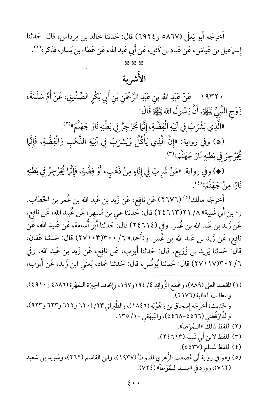 وعبد الرَّحمَن، يعني السراج، عن نافع، عن زيد بن عبد الله بن عمر. وفي ٦/ ٣٠٤ (٢٧١٣٠) قال: حدثنا حسين بن محمد، قال: حدثنا جرير، يعني ابن حازم، عن نافع، عن زيد بن عبد الله بن عمر. وفي ٦/ ٣٠٦ (٢٧١٤٦) قال: حدثنا يحيى بن سعيد، عن عُبيد الله، قال: أخبرني نافع، عن زيد بن عبد الله بن عمر. و «الدَّارِمي» (٢٢٦٨) قال: أخبرنا أحمد بن يونس، قال: حدثنا ليث بن سعد، عن نافع، عن زيد بن عبد الله بن عمر.