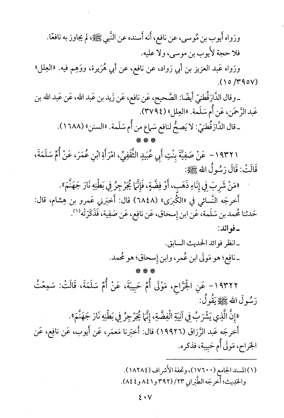١٩٣٢١ - عن صفية بنت أبي عُبيد الثقفي، امرأة ابن عمر، عن أُم سلمة، قالت: قال رسول الله صَلى الله عَليه وسَلم: