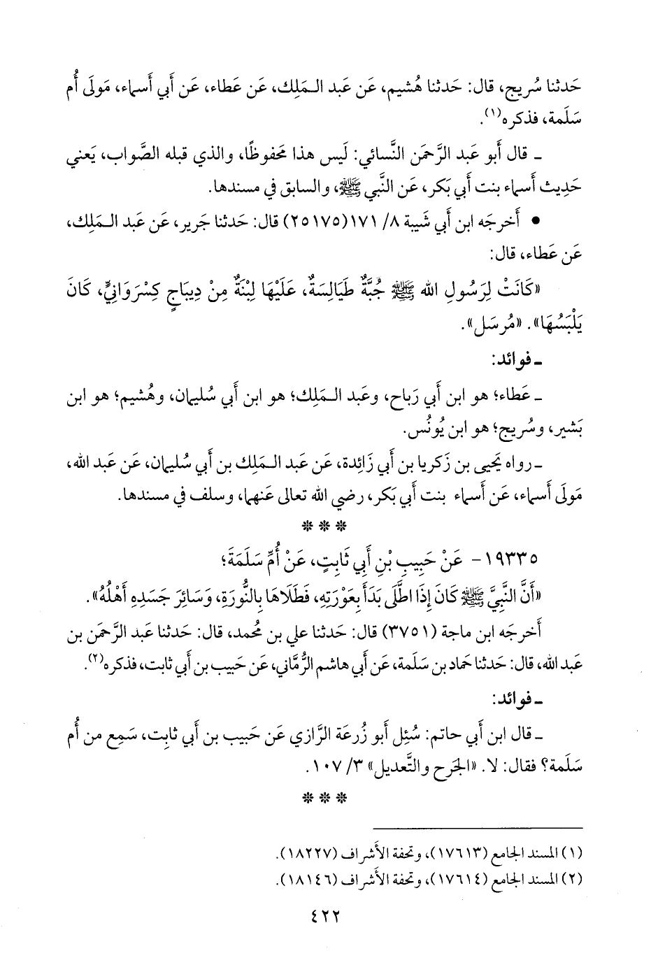 - عطاء؛ هو ابن أبي رباح، وعبد الملك؛ هو ابن أبي سليمان، وهُشيم؛ هو ابن بشير، وسريج؛ هو ابن يونس.