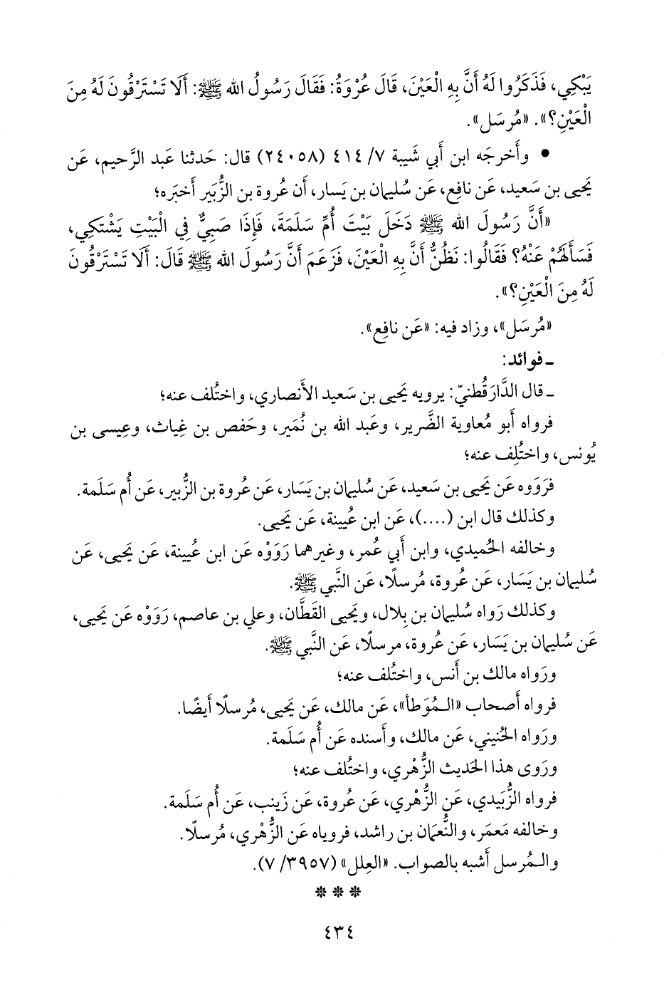 فرووه عن يحيى بن سعيد، عن سليمان بن يسار، عن عروة بن الزبير، عن أُم سلمة.