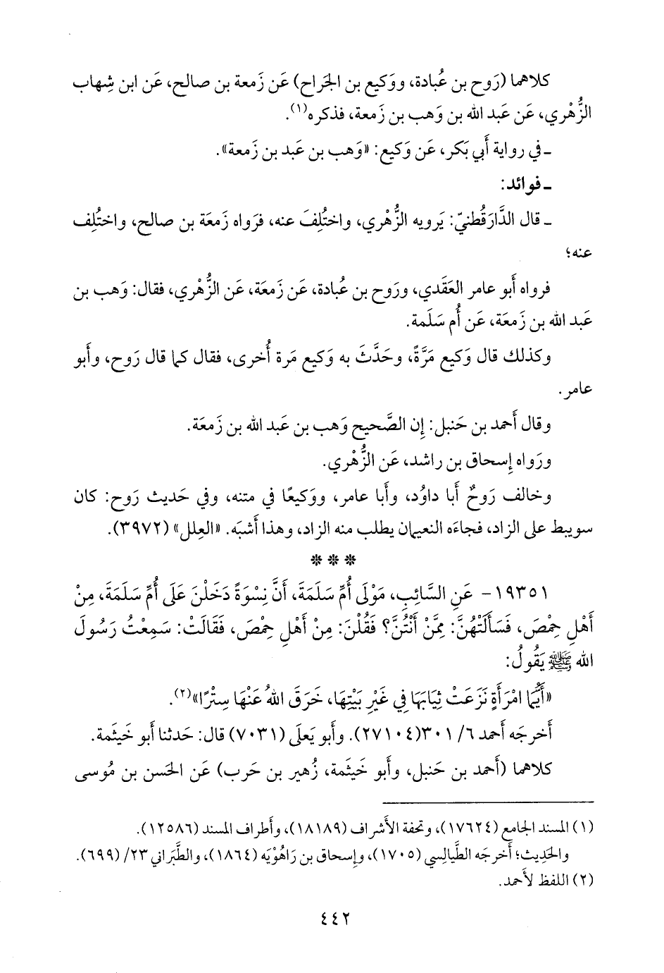 وقال أحمد بن حنبل: إن الصحيح وهب بن عبد الله بن زمعة.