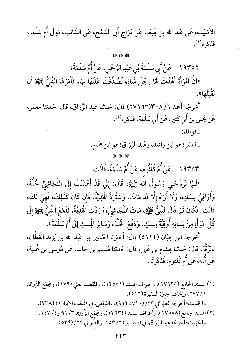 ١٩٣٥٣ - عن أم كلثوم، عن أُم سلمة، قالت: