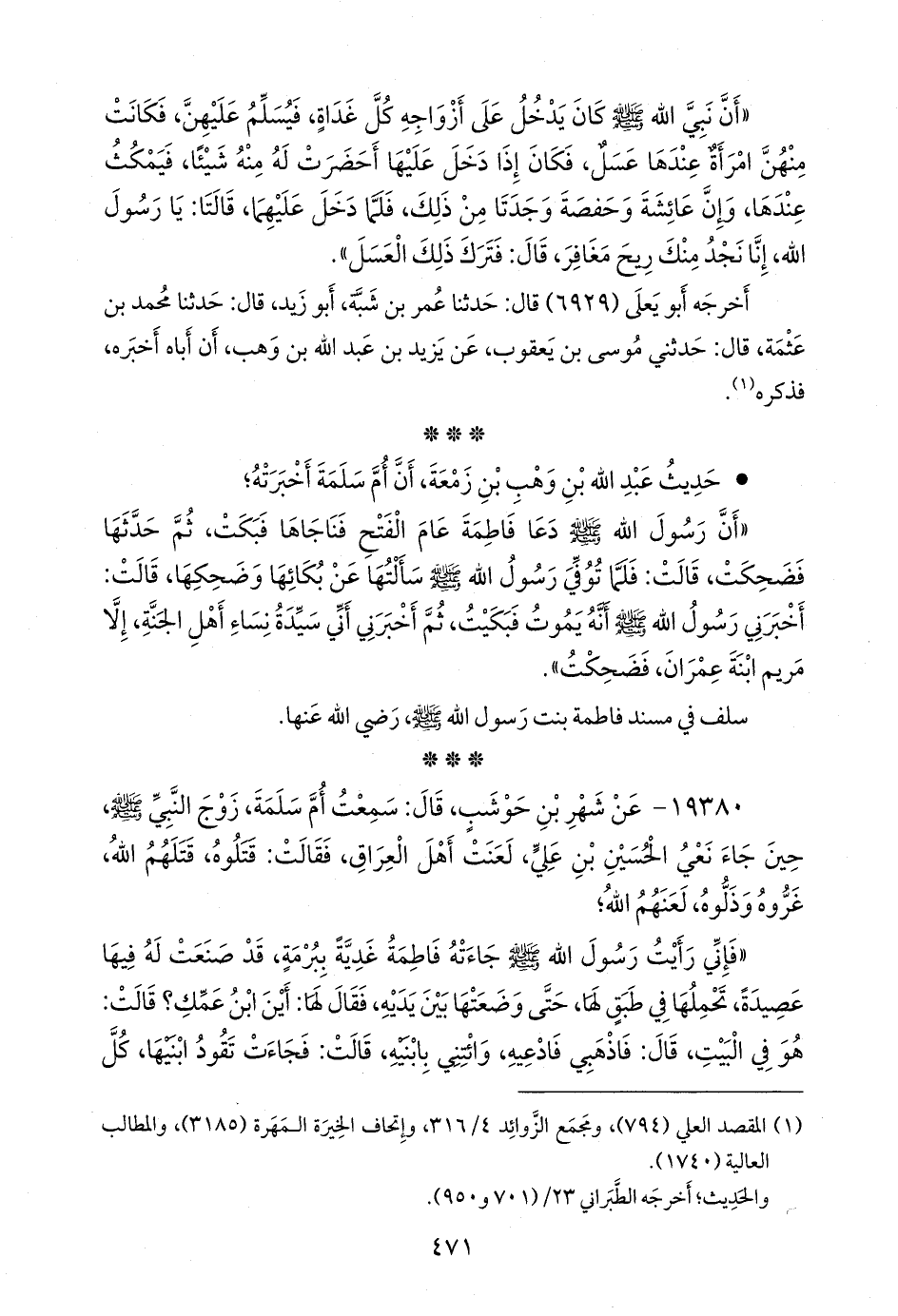 سلف في مسند فاطمة بنت رسول الله صَلى الله عَليه وسَلم رضي الله عنها.