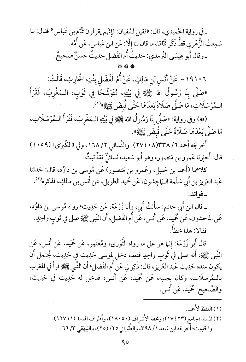 - قال عبد الرَّحمَن بن أبي حاتم الرازي: سألت أبي، وأَبا زُرعَة، عن حديث؛ رواه موسى بن داود، عن المَاجِشون، عن حميد، عن أَنس، عن أم الفضل، أن النبي صَلى الله عَليه وسَلم صلى في ثوب واحد.