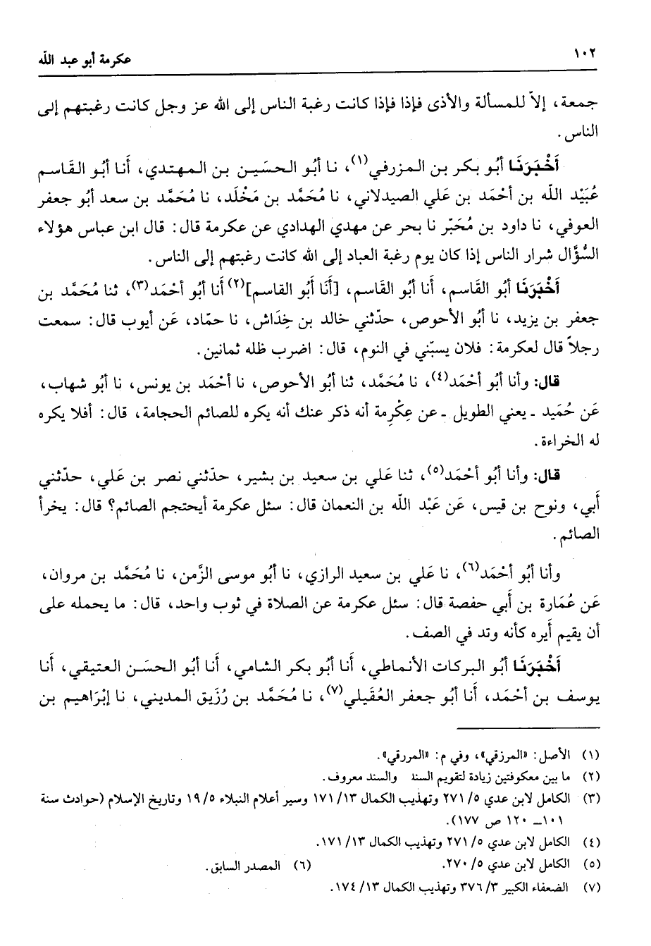 (3) الكامل لابن عدي 5 / 271 وتهذيب الكمال 13 / 171 وسير اعلام النبلاء 5 / 19 وتاريخ الاسلام (حوادث سنة 101 - 120 ص 177) (4) الكامل لابن عدي 5 / 271 وتهذيب الكمال 13 / 171