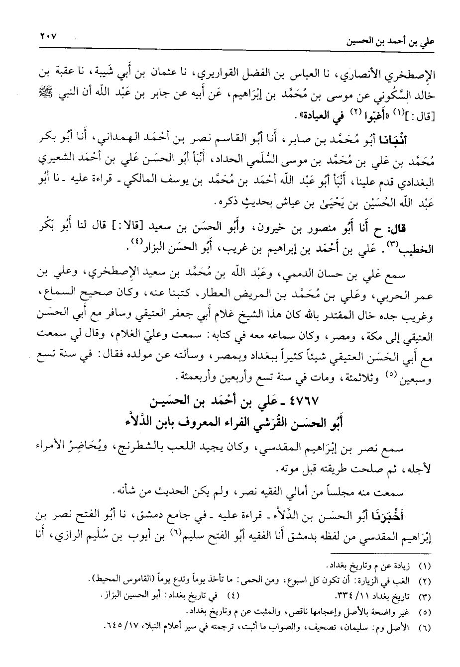 (5) غير واضحة بالاصل واعجامها ناقص والمثبت عن م وتاريخ بغداد (6) الاصل وم: سليمان تصحيف والصواب ما اثبت ترجمة في سير اعلام النبلاء 17 / 645