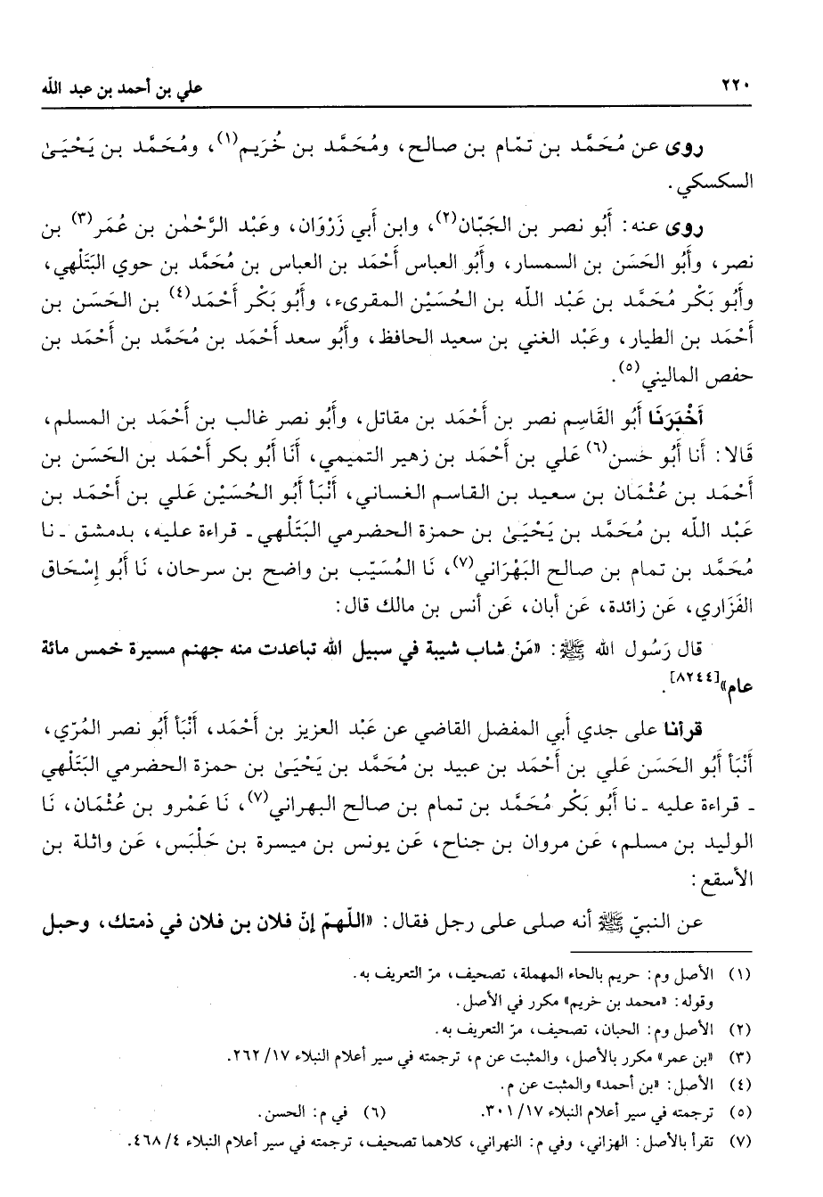 (7) تقرأ بالاصل: الهزاني وفي م: النهراني كلاهما تصحيف ترجمته في سير اعلام النبلاء 4 / 468