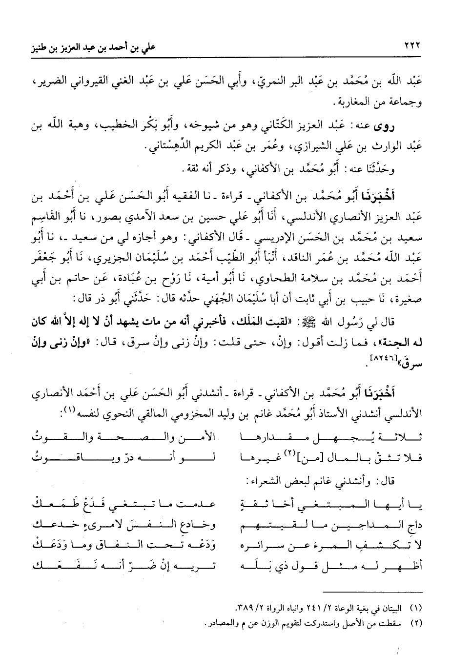 (1) البيتان في بغية الوعاة 2 / 241 وانباه الرواة 2 / 389