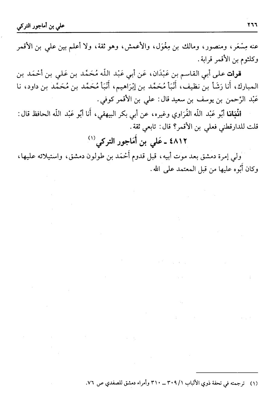 4812 - علي بن أما جور التركي (1) ولي إمرة دمشق بعد موت أبيه قبل قدوم أحمد بن طولون دمشق وإستيلائه عليها وكان أبوه عليها من قبل المعتمد على الله
