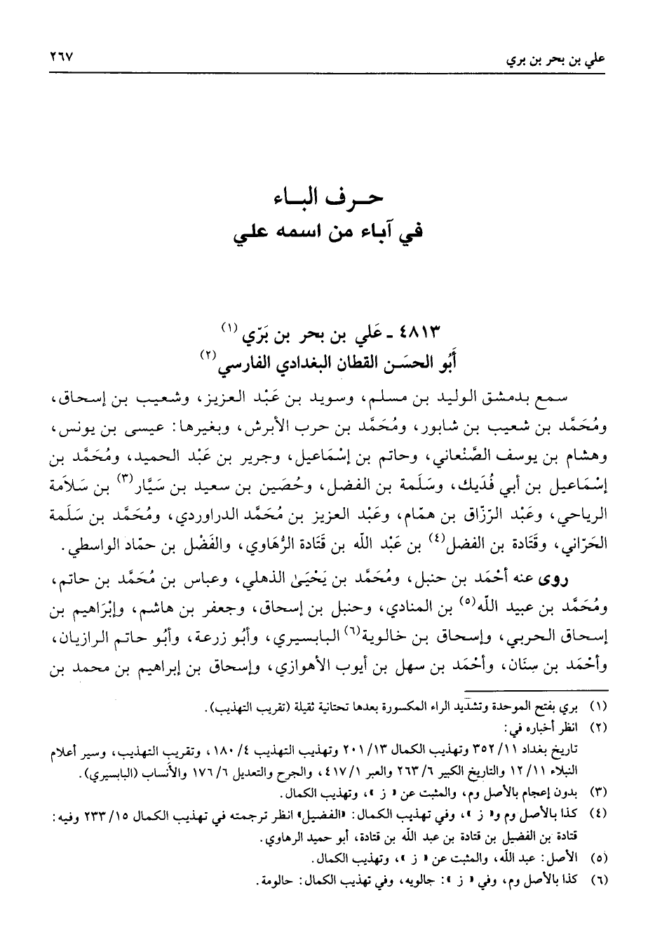 (1) بري بفتح الموحدة وتشديد الراء المكسورة بعدها تحتانية ثقلية (تقريب التهذيب)