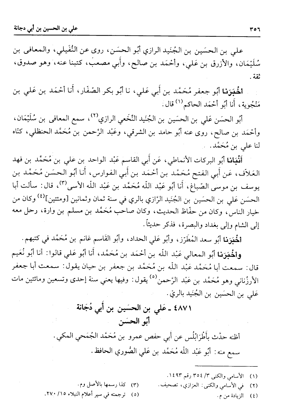 4871 - علي بن الحسين بن أبي دجانة أبو الحسن أظنه حدث بأطرابلس عن أبي حفص عمرو بن محمد الجمحي المكي سمع منه أبو عبد الله محمد بن علي الصوري الحافظ