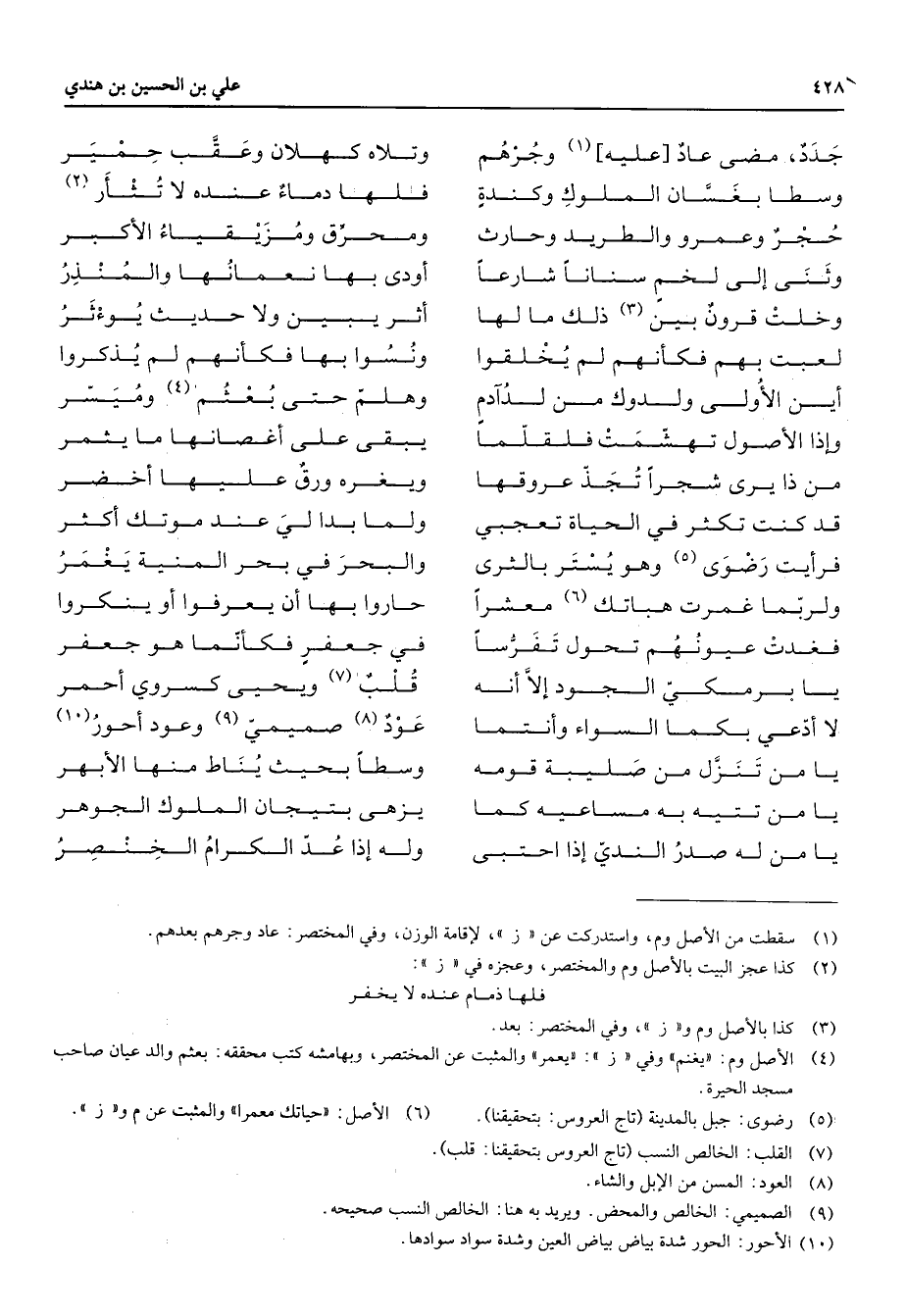 (1) سقطت من الاصل وم واستدركت عن " ز " لاقامة الوزن وفي المختصر: عاد وجرهم بعدهم