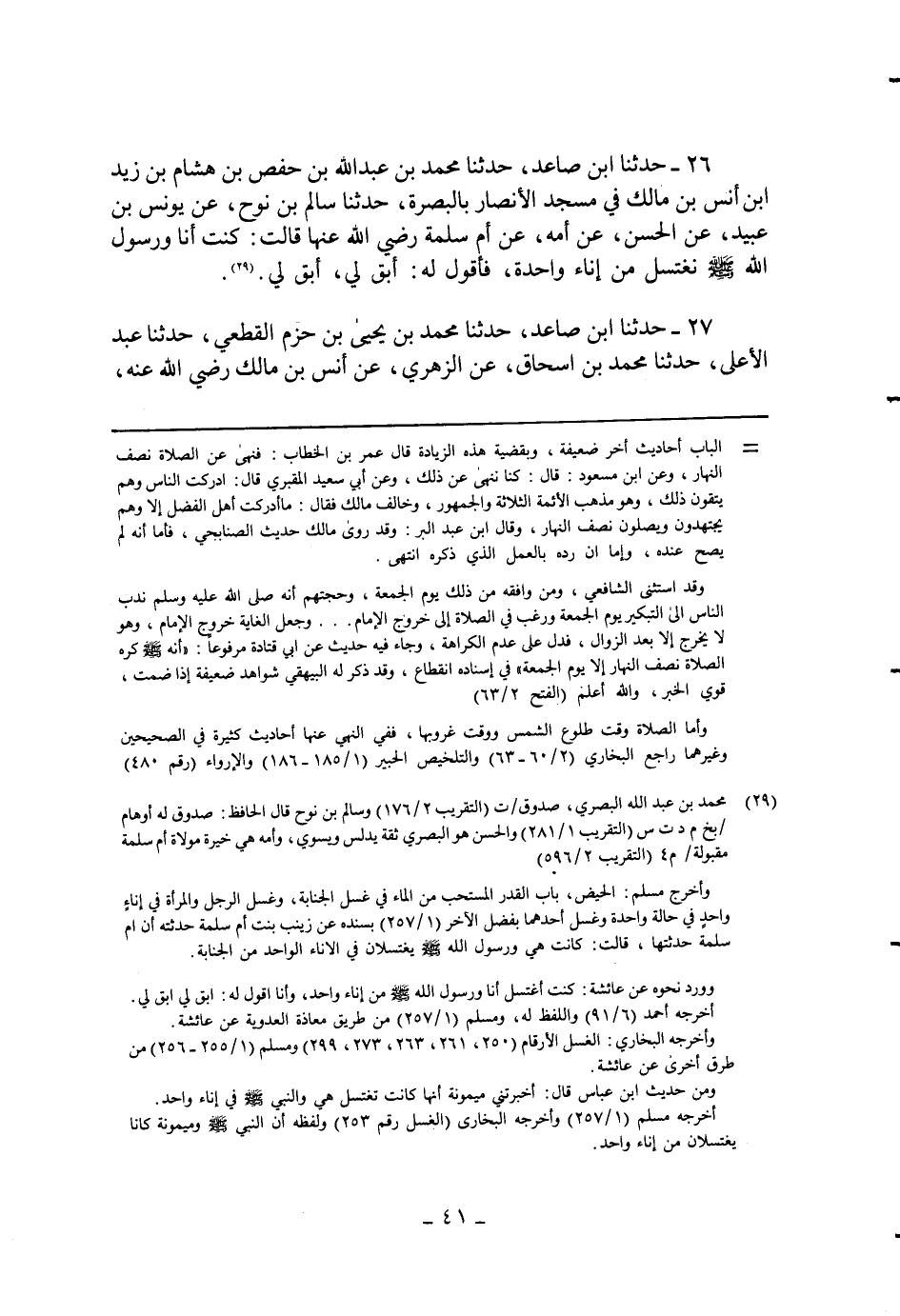 26 - حَدثنَا ابْن صاعد حَدثنَا مُحَمَّد بن عبد الله بن حَفْص بن هِشَام بن زيد بن أنس بن مَالك فِي مَسْجِد الْأَنْصَار بِالْبَصْرَةِ حَدثنَا سَالم بن نوح عَن يُونُس بن عبيد عَن الْحسن عَن أمه عَن أم سَلمَة رَضِي الله عَنْهَا قَالَت كنت أَنا وَرَسُول الله صلى الله عَلَيْهِ وَسلم نغتسل من إِنَاء وَاحِدَة فَأَقُول لَهُ أبق لي أبق لي