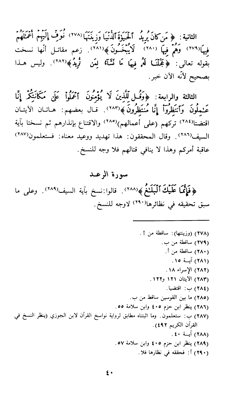 {فَإِنَّمَا عَلَيْكَ الْبَلاغُ} 11 قالوا نسخ بآية السيف12. وعلى ما سبق تحقيقه في نظائرها13 لا وجه للنسخ
