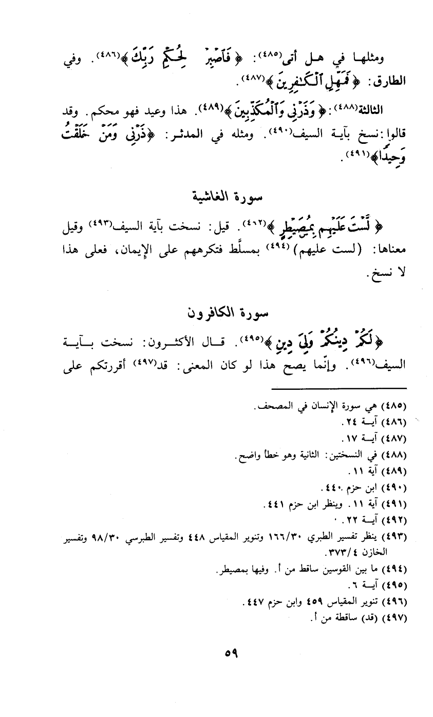 {لَكُمْ دِينُكُمْ وَلِيَ دِينِ} 11 قال الأكثرون نسخت بآية السيف12 وإنما يصح هذا لو كان المعنى قد13 أقررتكم على