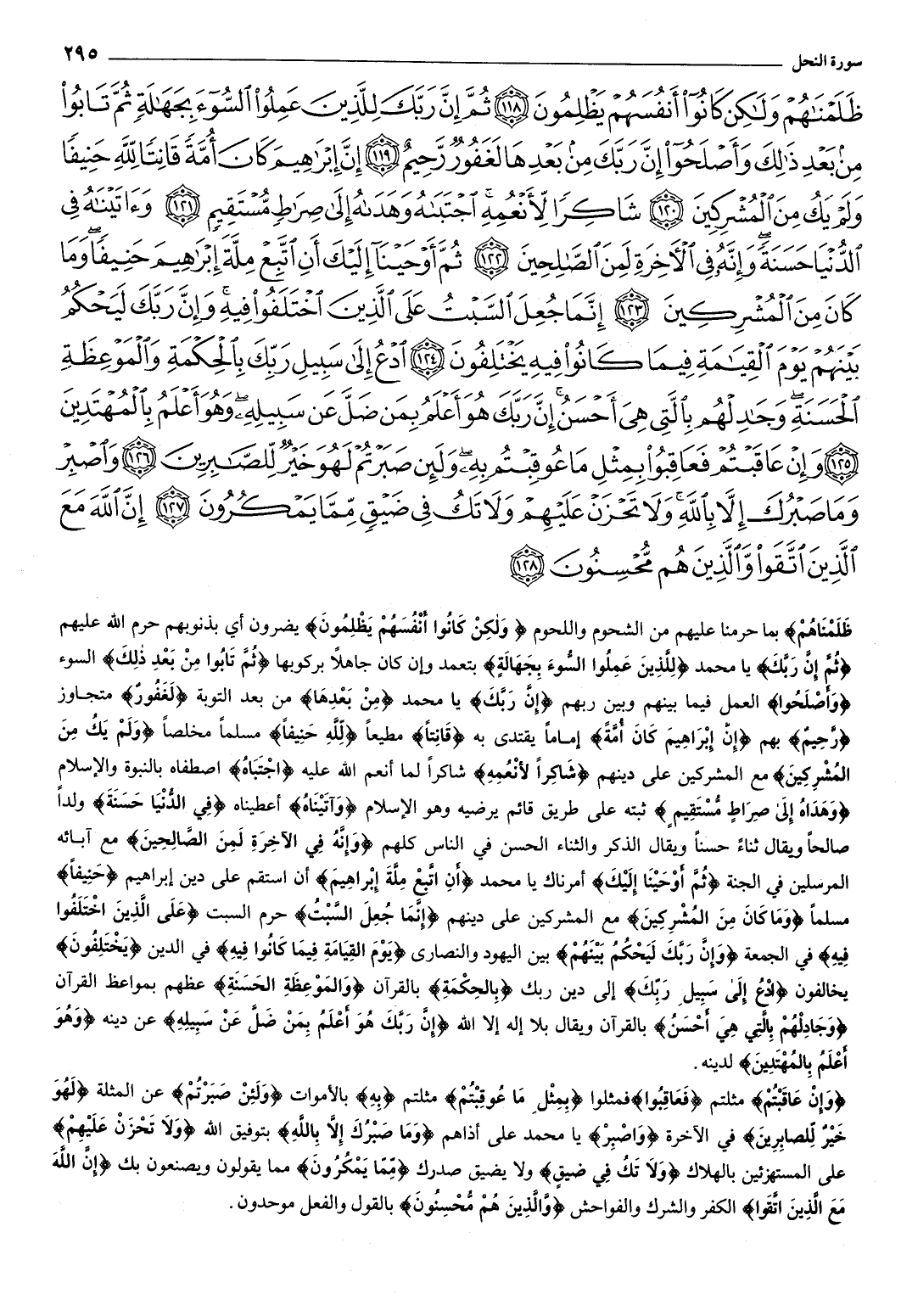 يرخين قناعهن {على جُيُوبِهِنَّ} على صدورهن ونحورهن وليشدن ذَلِك ثمَّ ذكر الزِّينَة أَيْضا فَقَالَ {وَلاَ يُبْدِينَ زِينَتَهُنَّ} الدملوج والوشاح وَغير ذَلِك {إِلاَّ لِبُعُولَتِهِنَّ} أَزوَاجهنَّ {أَوْ آبَآئِهِنَّ} فِي النّسَب أَو اللَّبن {أَوْ آبَآءِ بُعُولَتِهِنَّ} أَو آبَاء أَزوَاجهنَّ {أَوْ أَبْنَآئِهِنَّ} فِي النّسَب أَو اللَّبن {أَوْ أَبْنَآءِ بُعُولَتِهِنَّ} أَبنَاء أَزوَاجهنَّ من غَيْرهنَّ {أَوْ إِخْوَانِهِنَّ} فِي النّسَب أَو اللَّبن {أَوْ بني إِخْوَانِهِنَّ} فِي النّسَب أَو اللَّبن {أَوْ بَنِي أَخَوَاتِهِنَّ} فِي النّسَب أَو اللَّبن {أَوْ نِسَآئِهِنَّ} نسَاء أهل دينهن المسلمات لِأَنَّهُ لَا يحل لَهَا أَن ترَاهَا متجردة يَهُودِيَّة أَو نَصْرَانِيَّة أَو مَجُوسِيَّة {أَوْ مَا مَلَكَتْ أَيْمَانُهُنَّ} من الْإِمَاء دون العبيد {أَوِ التَّابِعين} لِأَزْوَاجِهِنَّ {غَيْرِ أُوْلِي الإربة} الشَّهْوَة {مِنَ الرِّجَال} وَالنِّسَاء يعى الْخصي وَالشَّيْخ الْكَبِير الفاني {أَوِ الطِّفْل} يَعْنِي الصَّغِير {الَّذين لَمْ يَظْهَرُواْ على عَوْرَاتِ النسآء} لم يطيقوا المجامعة مَعَ النِّسَاء وَلَا (النِّسَاء) مَعَهم من الصغر وَلَا يعلمُونَ من أَمر الرِّجَال وَالنِّسَاء شَيْئا فَلَا بَأْس بِأَن يرى زينتهن هَؤُلَاءِ بِغَيْر رِيبَة {وَلاَ يَضْرِبْنَ بِأَرْجُلِهِنَّ} إِحْدَاهمَا بِالْأُخْرَى لتقرع الخلخال بالخلخال {لِيُعْلَمَ} لكَي يعلم وَيظْهر {مَا يُخْفِينَ مِن زِينَتِهِنَّ} مَا يوارين من زينتهن يَعْنِي الخلاخل عِنْد الْغَرِيب {وتوبوا إِلَى الله جَمِيعاً} من جَمِيع الذُّنُوب الصَّغَائِر والكبائر {أَيهَا الْمُؤْمِنُونَ لَعَلَّكُمْ تُفْلِحُونَ} لكَي تنجوا من السخط وَالْعَذَاب