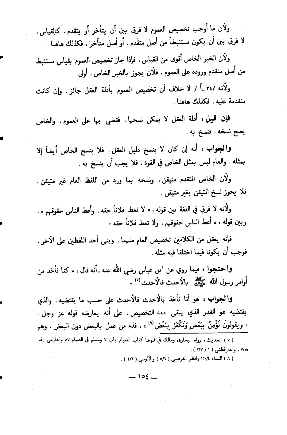 وَالْجَوَاب أَنه إِن كَانَ لَا ينْسَخ دَلِيل الْعقل فَلَا ينْسَخ الْخَاص أَيْضا إِلَّا بِمثلِهِ وَالْعَام لَيْسَ مثل الْخَاص فِي الْقُوَّة فَلَا يجب أَن ينْسَخ بِهِ