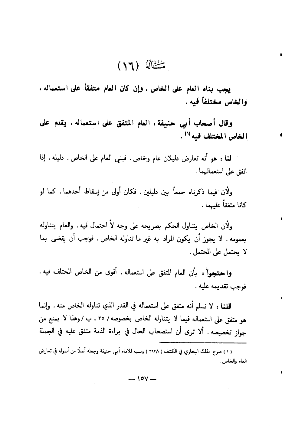 يجب بِنَاء الْعَام على الْخَاص وَإِن كَانَ الْعَام مُتَّفقا على اسْتِعْمَاله وَالْخَاص مُخْتَلفا فِيهِ