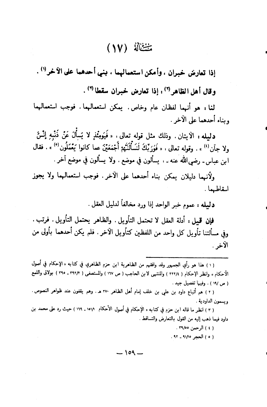 فَإِن قيل أَدِلَّة الْعقل لَا تحْتَمل التَّأْوِيل وَالظَّاهِر يحْتَمل التَّأْوِيل فرتب وَفِي مَسْأَلَتنَا تَأْوِيل كل وَاحِد من اللَّفْظَيْنِ كتأويل الآخر فَلم يكن أَحدهمَا بِأولى من الآخر