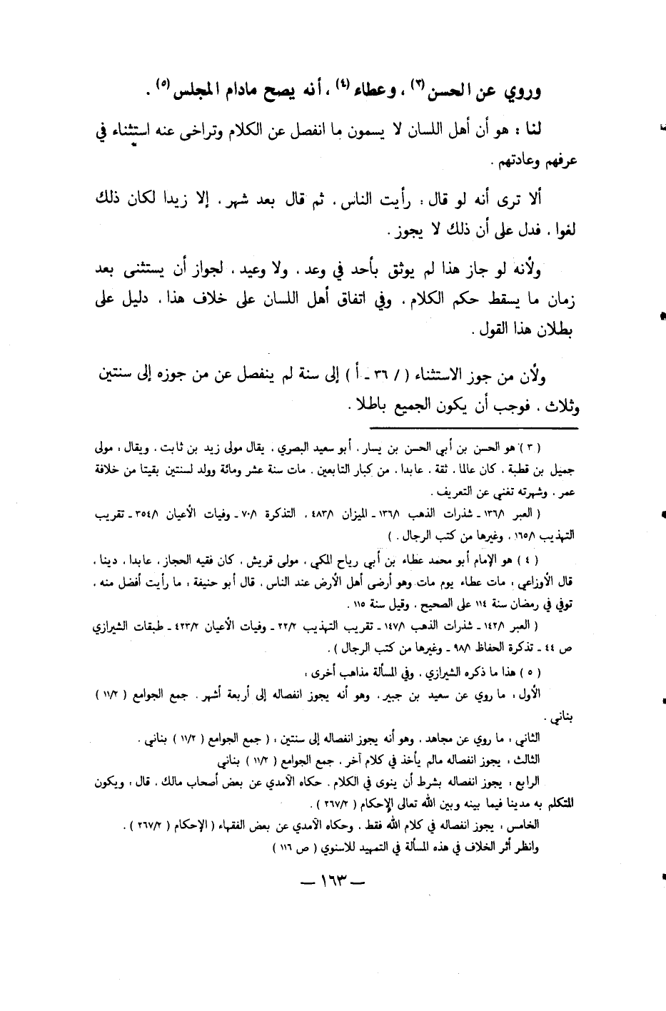 وَلِأَن من جوز الِاسْتِثْنَاء إِلَى سنة لم ينْفَصل عَن من جوزه إِلَى سنتَيْن وَثَلَاث فَوَجَبَ أَن يكون الْجَمِيع بَاطِلا