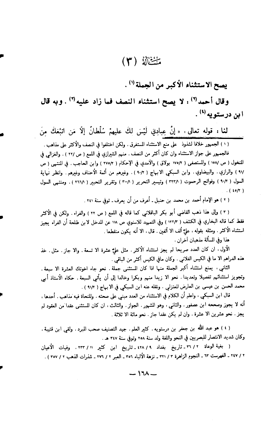 وَقَالَ أَحْمد لَا يَصح اسْتثِْنَاء النّصْف فَمَا زَاد عَلَيْهِ وَبِه قَالَ ابْن درسْتوَيْه