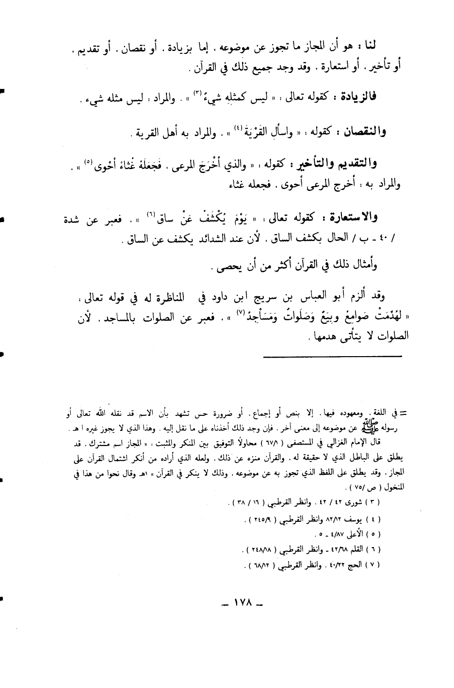 وَالنُّقْصَان كَقَوْلِه {واسأل الْقرْيَة} وَالْمرَاد بِهِ أهل الْقرْيَة