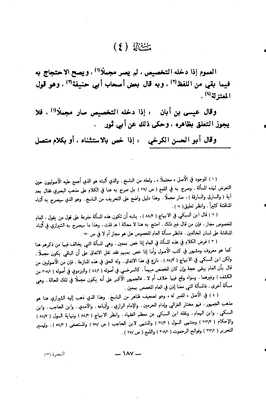 وَقَالَ أَبُو الْحسن الْكَرْخِي إِذا خص بِالِاسْتِثْنَاءِ أَو بِكَلَام مُتَّصِل