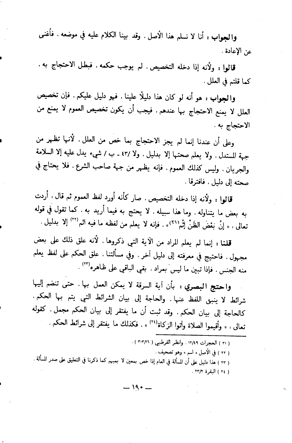 وَالْجَوَاب أَنا لَا نسلم هَذَا الأَصْل وَقد بَينا الْكَلَام عَلَيْهِ فِي مَوْضِعه فأغنى عَن الْإِعَادَة
