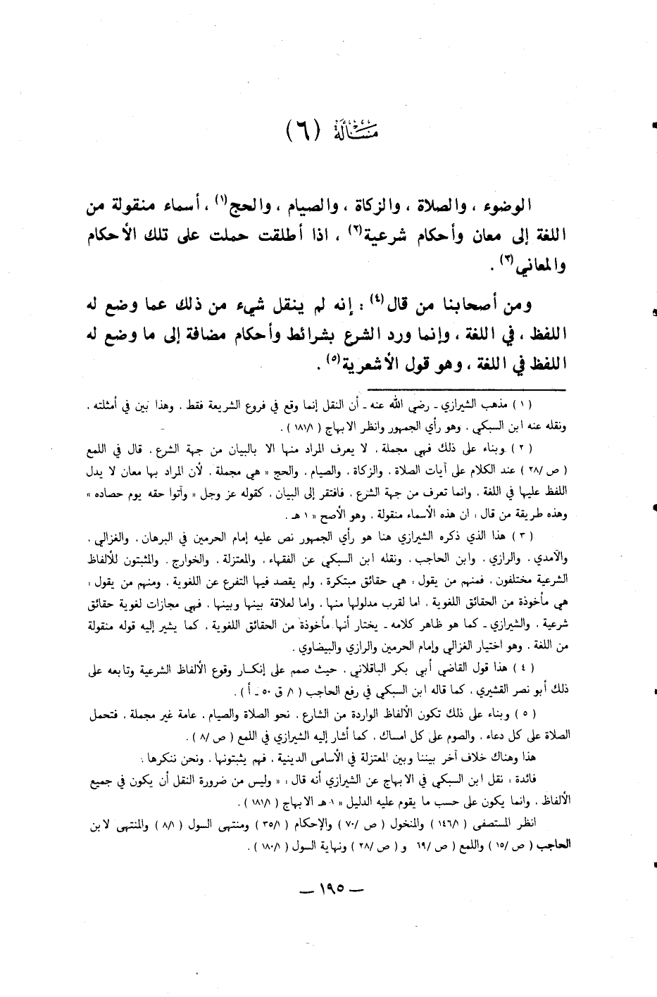 وَمن أَصْحَابنَا من قَالَ إِنَّه لم ينْقل شَيْء من ذَلِك عَمَّا وضع لَهُ اللَّفْظ فِي اللُّغَة وَإِنَّمَا ورد الشَّرْع بشرائط وَأَحْكَام مُضَافَة إِلَى مَا وضع لَهُ اللَّفْظ فِي اللُّغَة وَهُوَ قَول الأشعرية