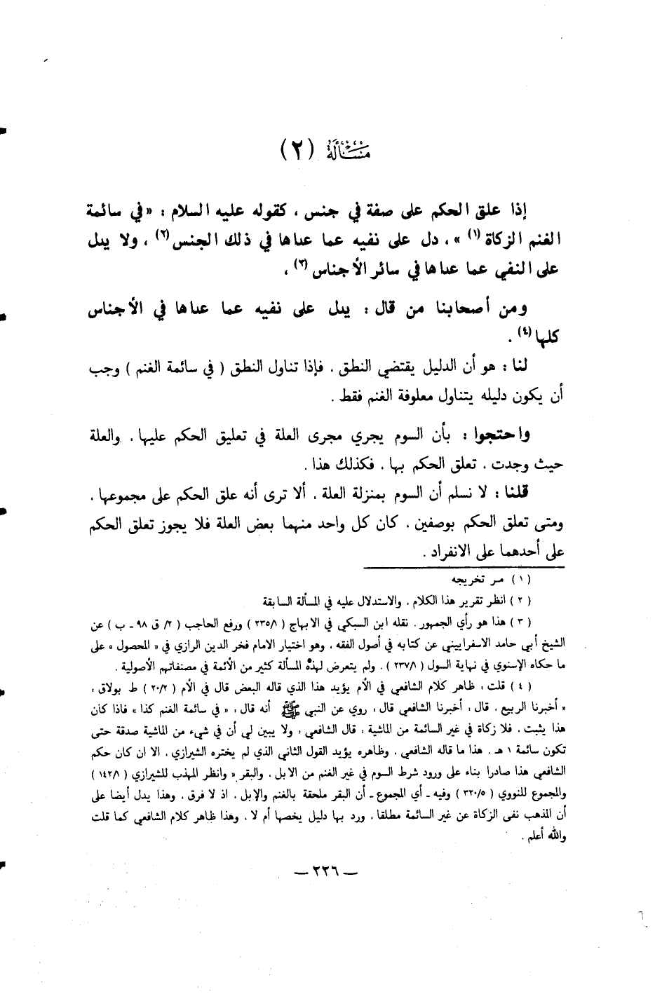 إِذا علق الحكم على صفة فِي جنس كَقَوْلِه عَلَيْهِ السَّلَام فِي سَائِمَة الْغنم الزَّكَاة دلّ على نَفْيه عَمَّا عَداهَا فِي ذَلِك الْجِنْس وَلَا يدل على النَّفْي عَمَّا عَداهَا فِي سَائِر الْأَجْنَاس