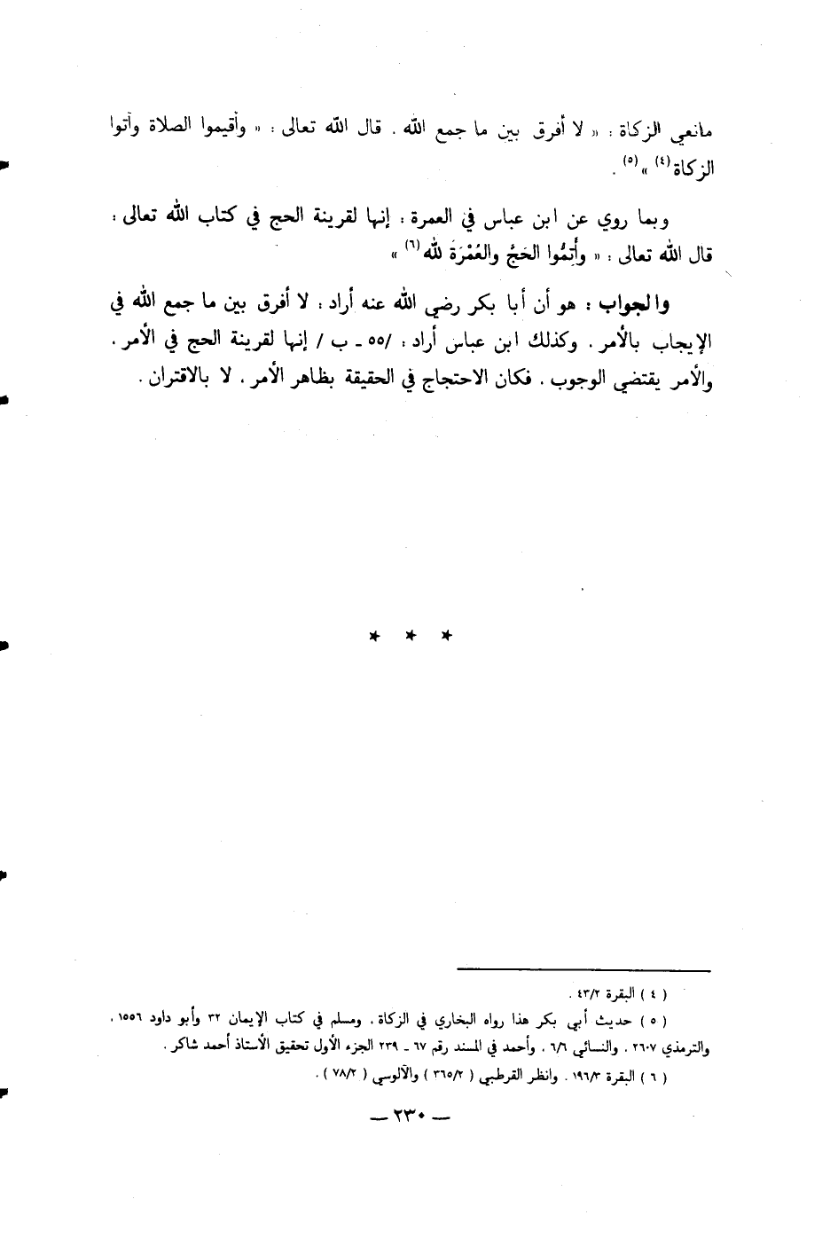 وَالْجَوَاب هُوَ أَن أَبَا أَنا بكر رَضِي الله عَنهُ أَرَادَ لَا أفرق بَين مَا جمع الله فِي الْإِيجَاب بِالْأَمر وَكَذَلِكَ ابْن عَبَّاس إِنَّهَا لقَرِينَة الْحَج فِي الْأَمر وَالْأَمر يَقْتَضِي الْوُجُوب فَكَانَ الِاحْتِجَاج فِي الْحَقِيقَة بِظَاهِر الْأَمر لَا بالاقتران