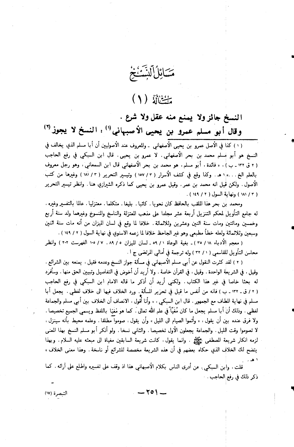 وَقَالَ أَبُو مُسلم عَمْرو بن يحيى الْأَصْبَهَانِيّ النّسخ لَا يجوز