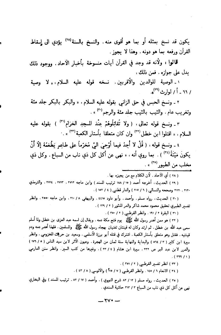وَنسخ قَوْله تَعَالَى {وَلَا تقاتلوهم عِنْد الْمَسْجِد الْحَرَام} بقوله عَلَيْهِ السَّلَام اقْتُلُوا ابْن خطل وَإِن كَانَ مُتَعَلقا بِأَسْتَارِ الْكَعْبَة